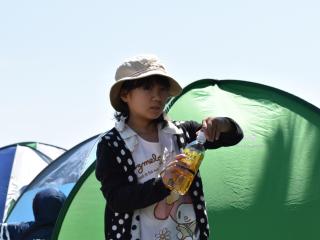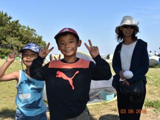 大きなブルーシートを敷いてひと休み。子ども達は大縄まわしやボール遊びです。