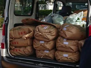 車に沢山のお米を積んで宅間さんが到着しました 。